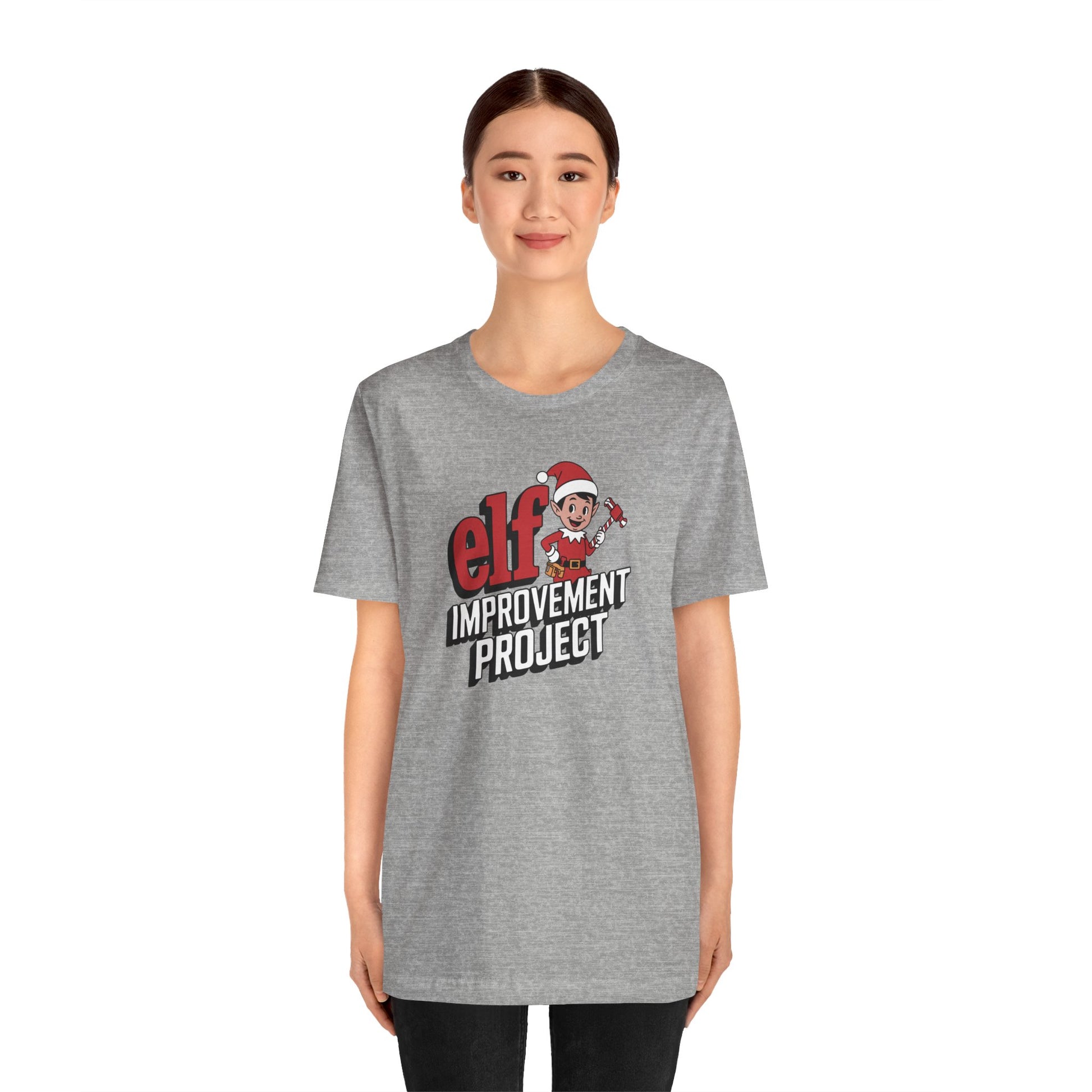Bring some holiday laughs to your wardrobe with this festive "Elf Improvement Project" shirt! Featuring a cheerful little elf holding a peppermint hammer and wearing a toolbelt, this design is perfect for anyone who loves Christmas, DIY projects, workshop humor, or holiday mischief.