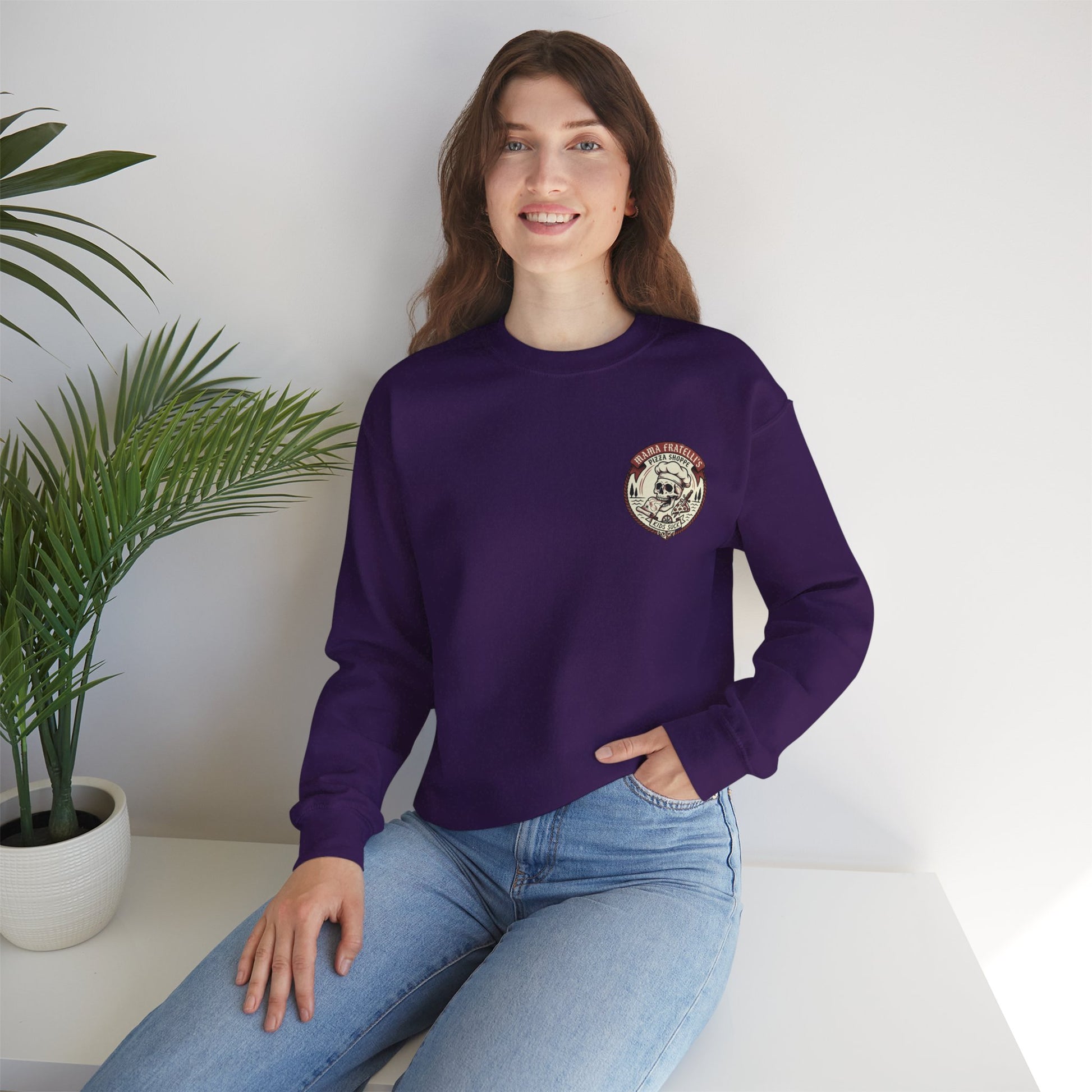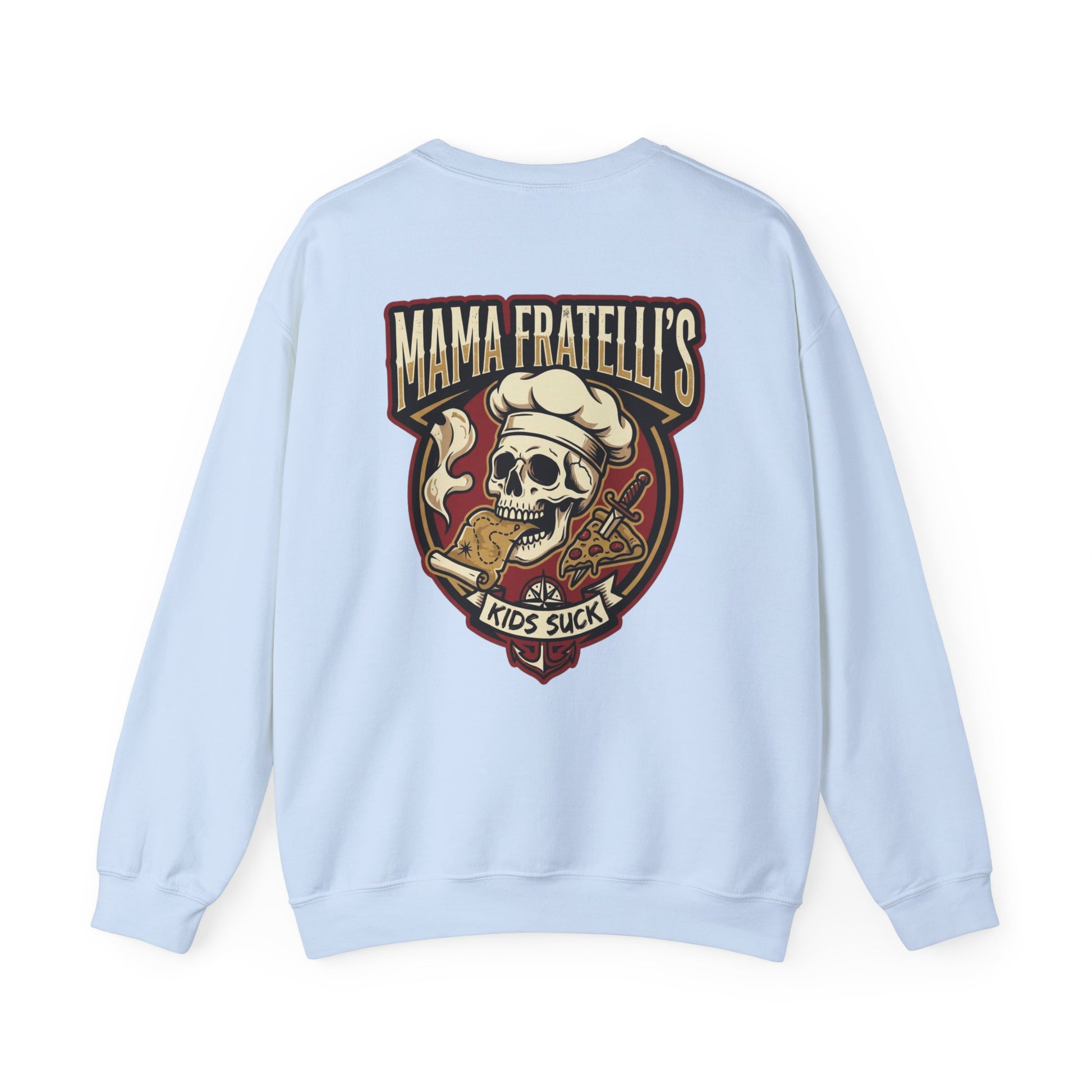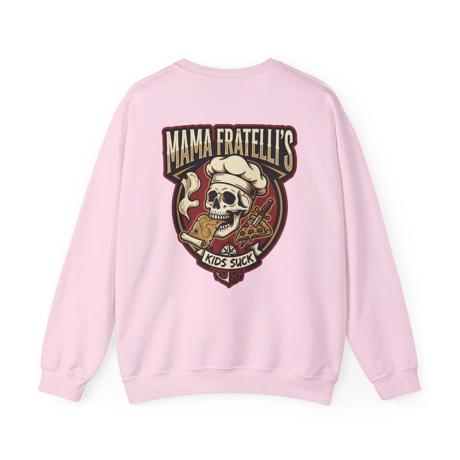 Mama Fratelli's Pizza Shoppe "By the Slice" Crewneck Sweatshirt - Kids Suck 80's Retro Graphic Crew