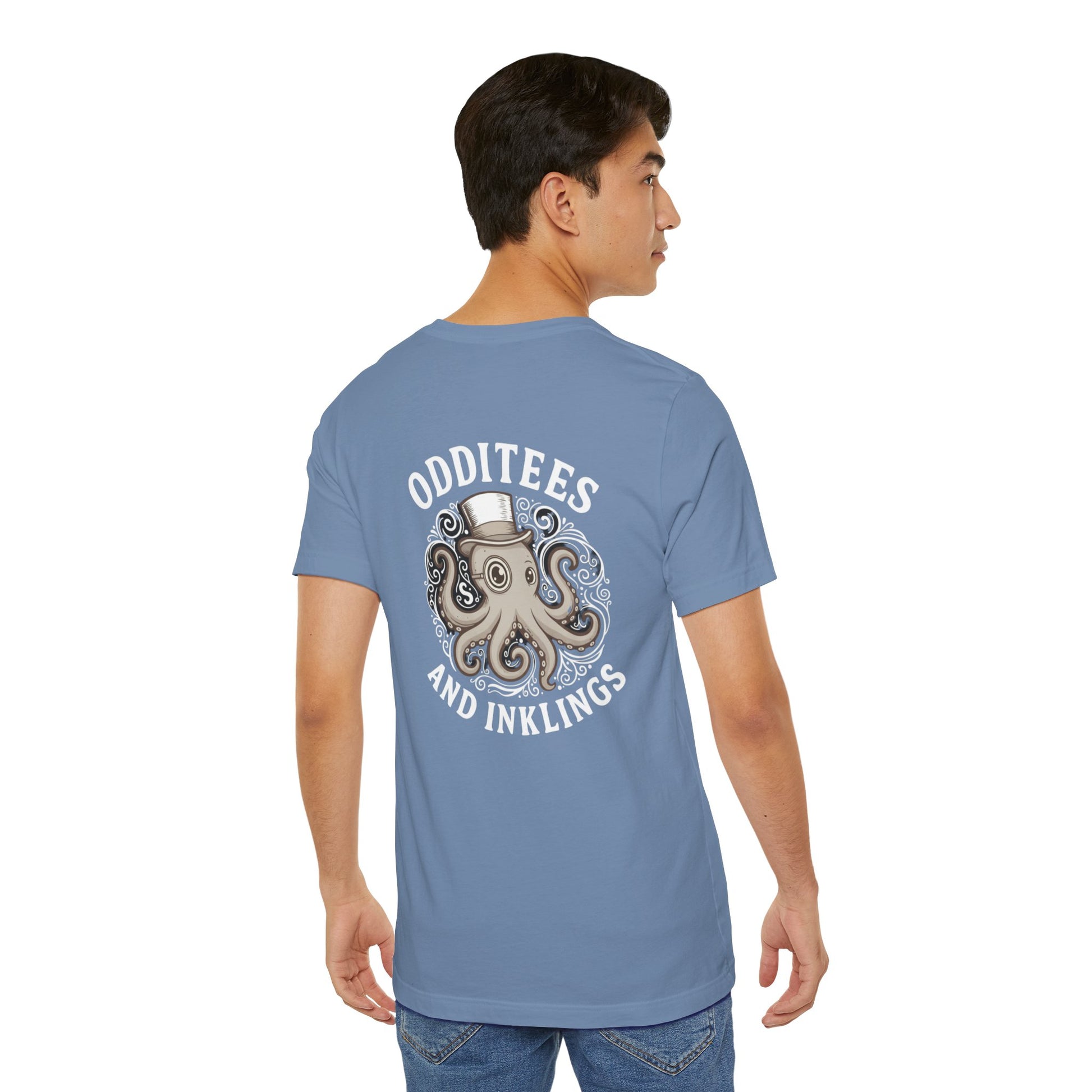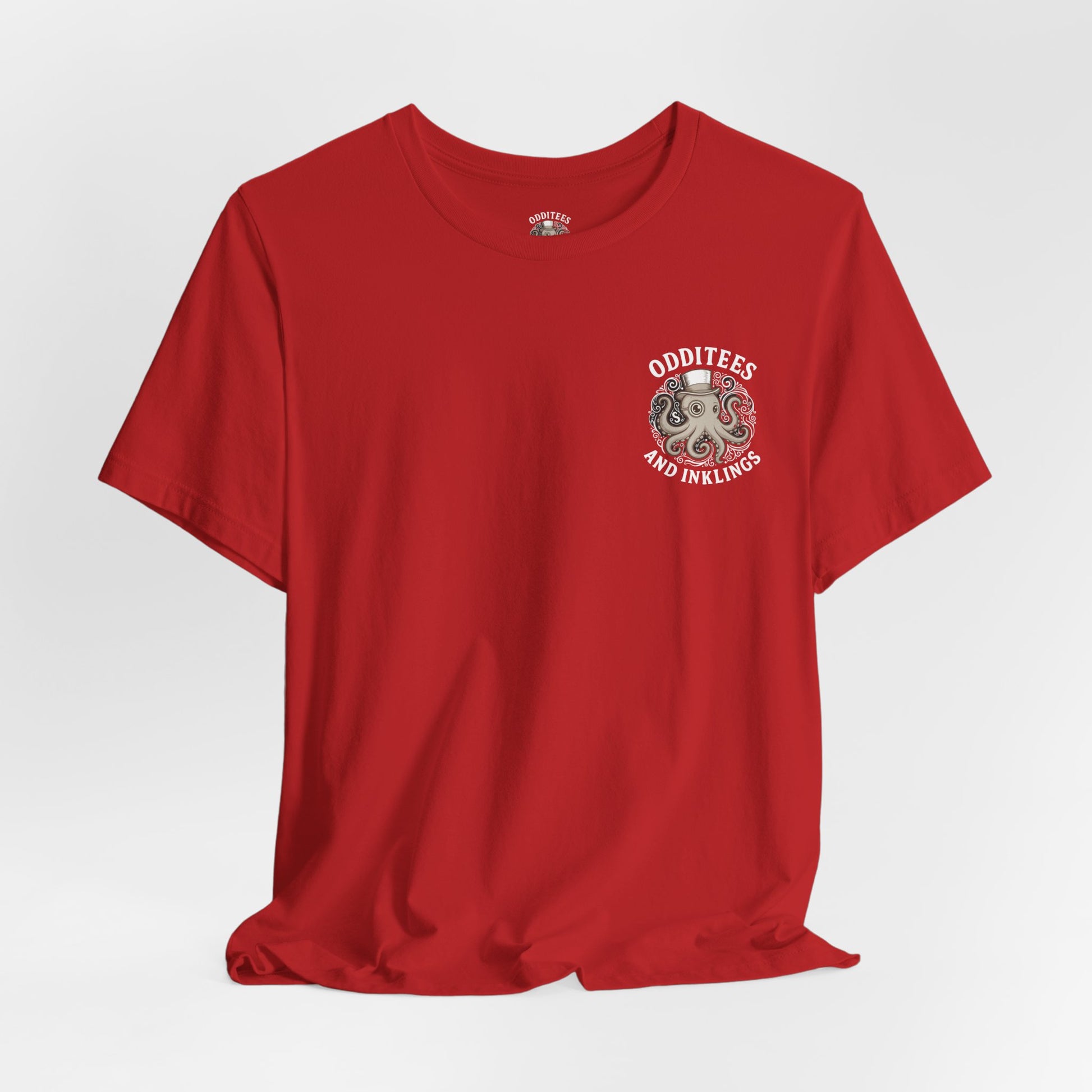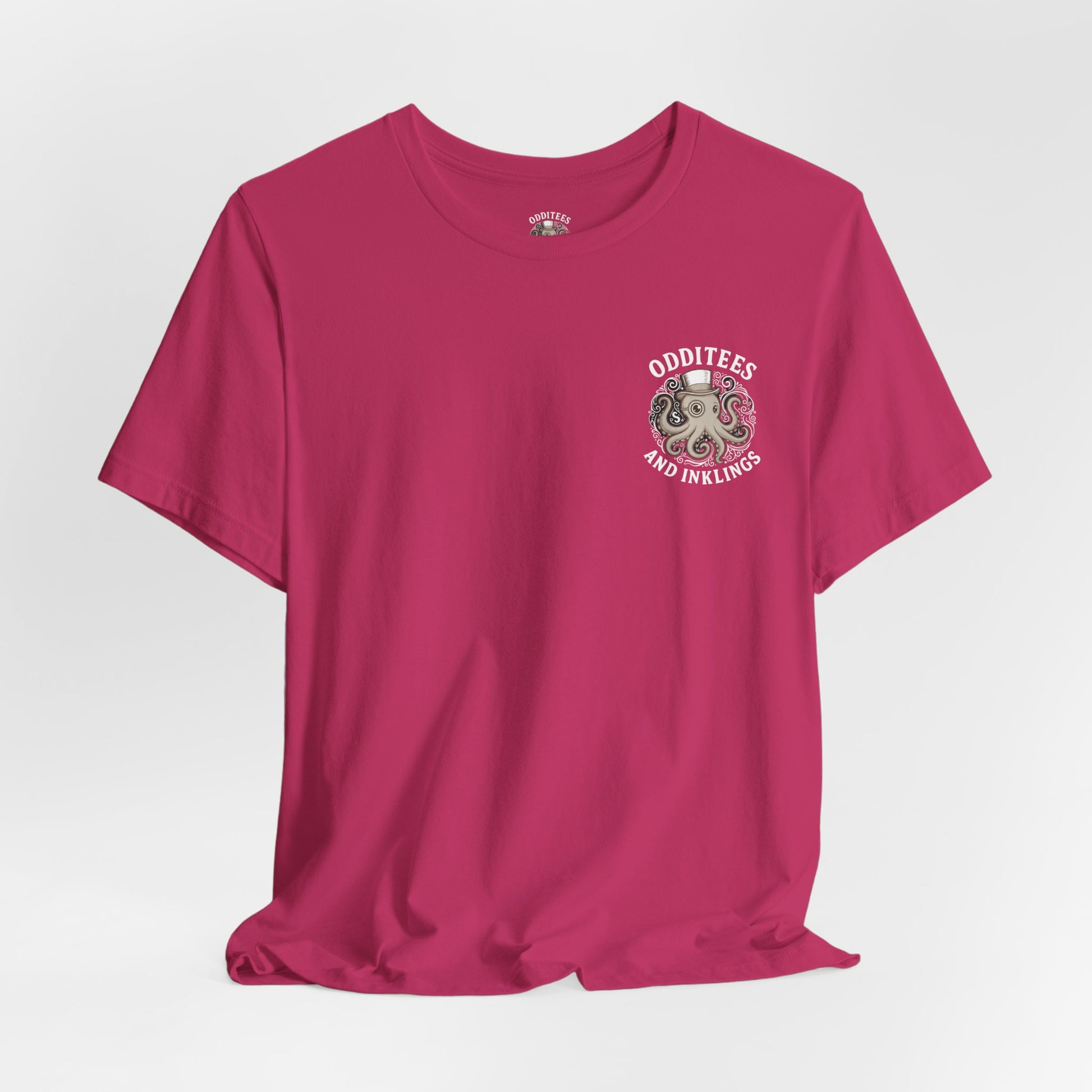 Bright, breathable, and full of personality — this lightweight tee brings a playful twist to everyday wear. The soft Airlume combed cotton feels gentle against the skin while the ribbed crew neck and shoulder tape keep the silhouette neat and comfortable. A whimsical octopus illustration sits bold on the back and a smaller chest mark gives subtle flair up front, so it reads as artful from every angle. Sustainably made and REACH certified, this tee layers easily for days at the beach, nights at a craft fair, or lazy weekends sketching and sipping coffee.