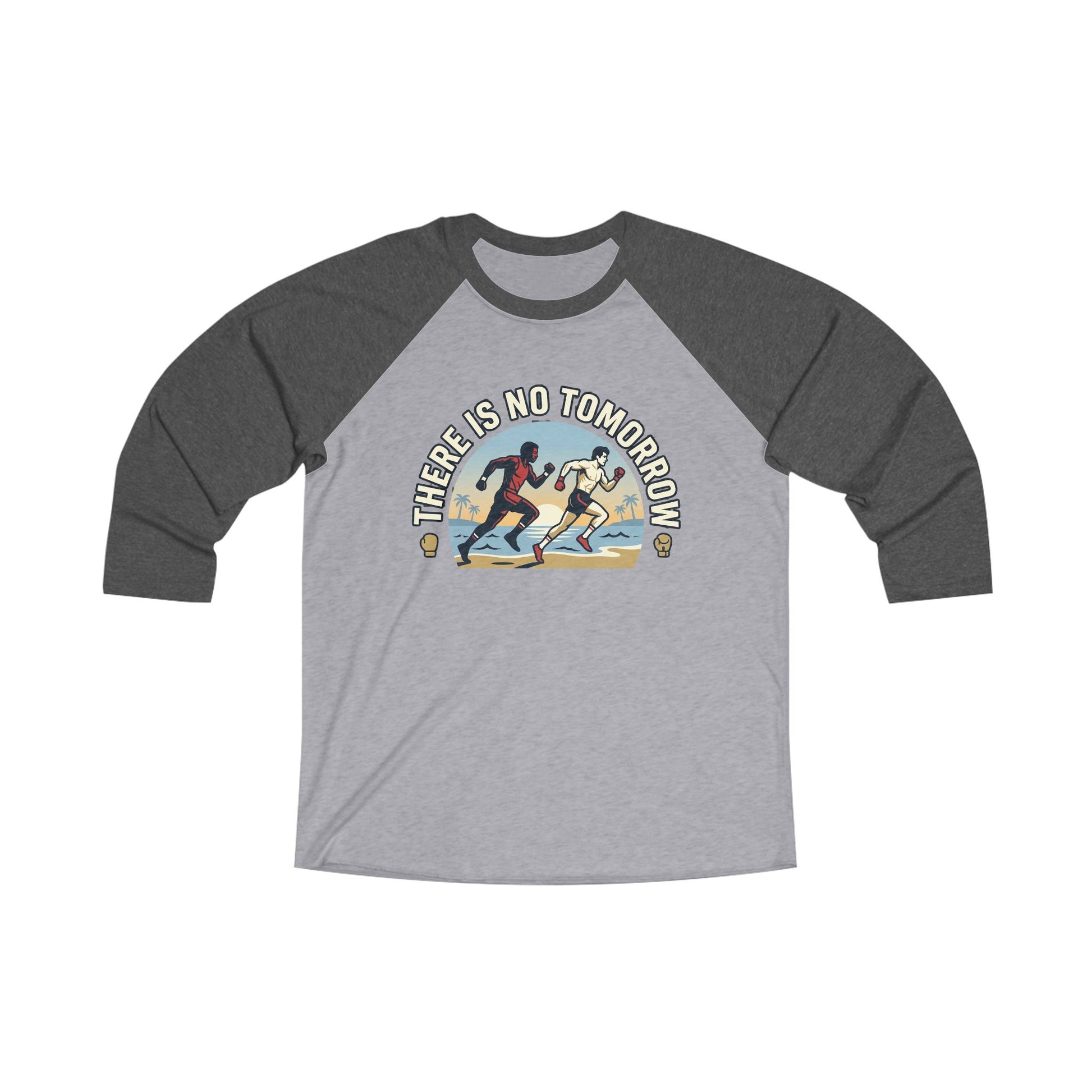 "There Is No Tomorrow" Underdog Montage Raglan Varsity Tee — “There Is No Tomorrow” Retro Fitness Varsity Shirt